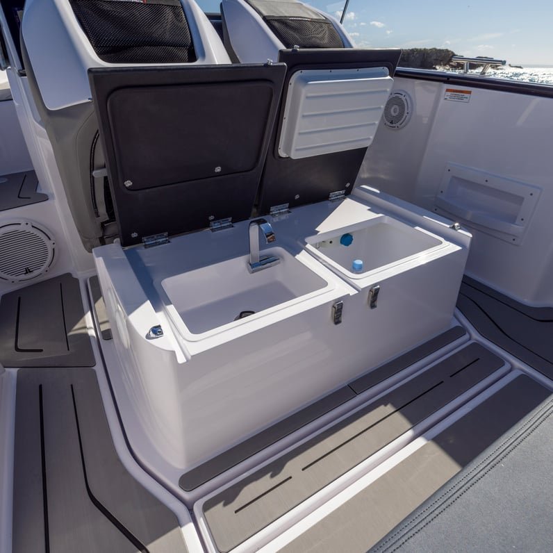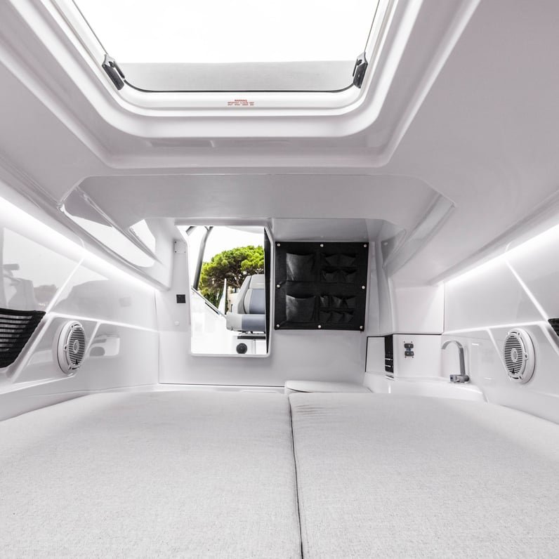 Construido para obtener cada centímetro de aventura de su tiempo en el mar, el deportivo Axopar 25 Cross Bow está garantizado para complacer a aquellos que buscan un compañero de juegos divertido con una fantástica capacidad de conducción para maximizar sus días en el agua. Gire la llave de contacto y acelere de una isla idílica a otra sintiendo esas emociones al aire libre, o la adrenalina subiendo al wakeboard. Si la tarde se hace noche, puede prolongar la aventura durante la noche en el acogedor camarote delantero de la embarcación.