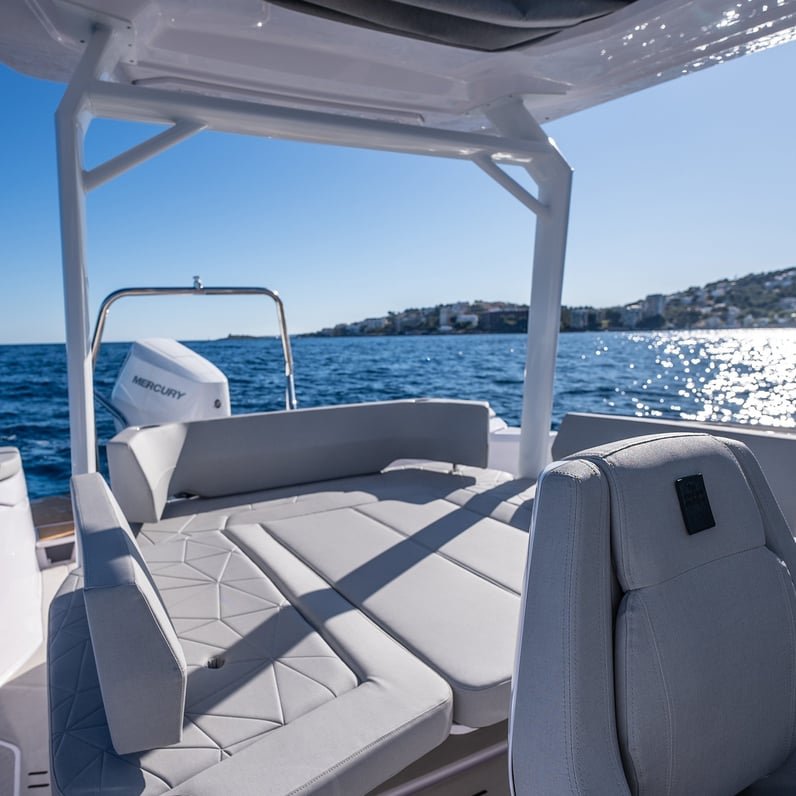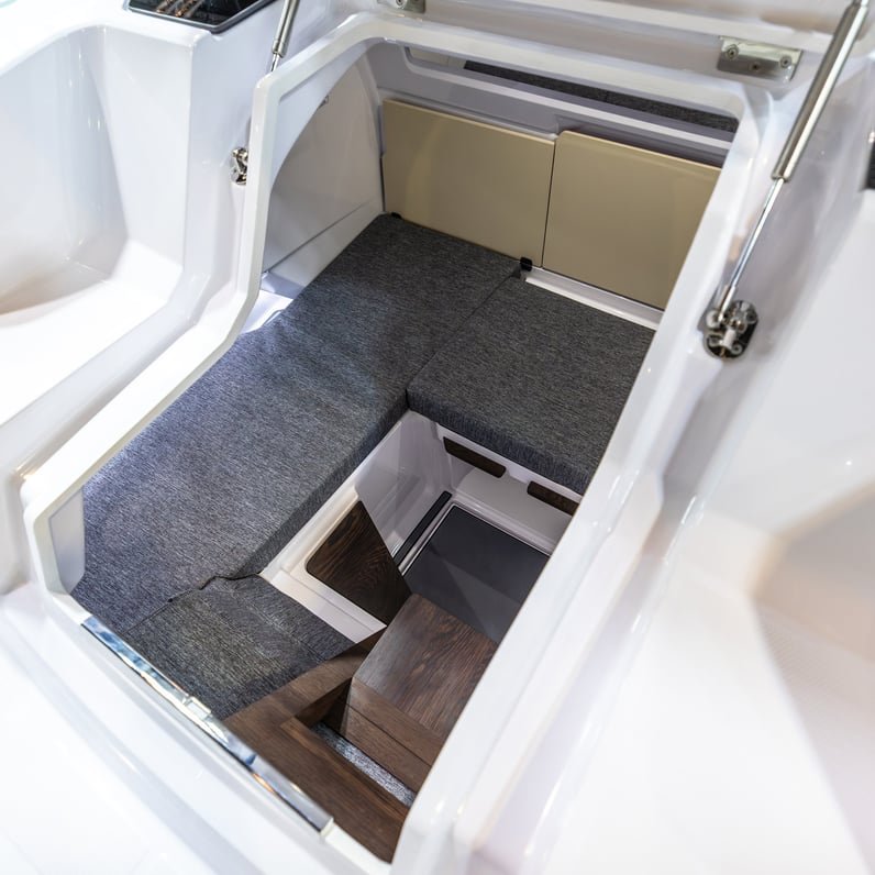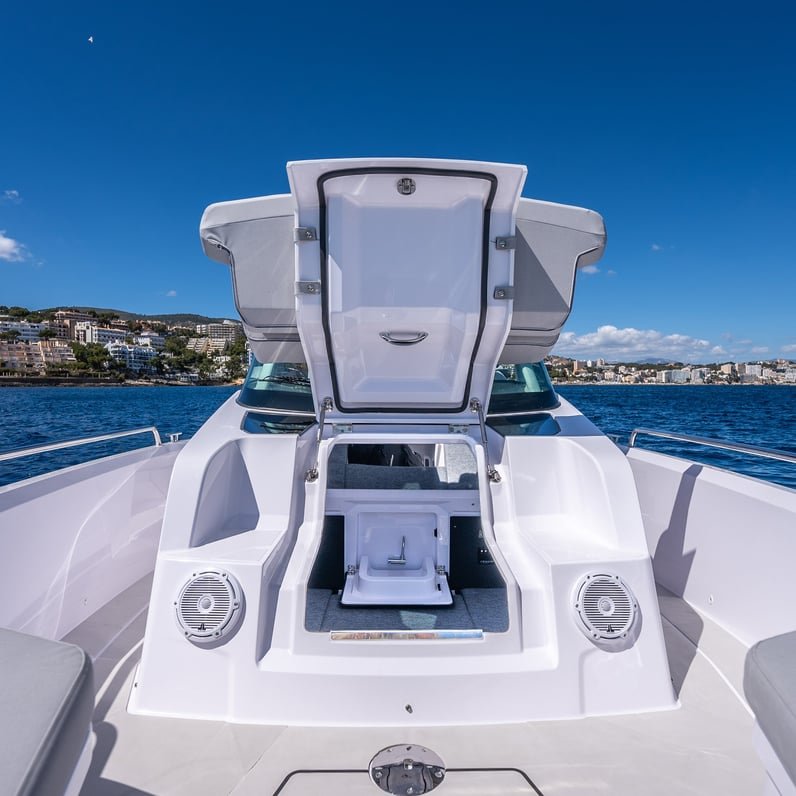 La naturaleza modular de los Axopar le permiten personalizar su embarcación con una distribución de popa que se adapte a sus necesidades cotidianas. De serie, el Axopar 29 Sun Top viene con una espaciosa cubierta de popa abierta. La cubierta de popa también puede equiparse con el sofá en forma de “U”, un módulo de bar o una cabina de popa.