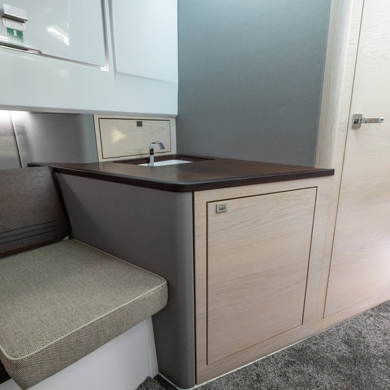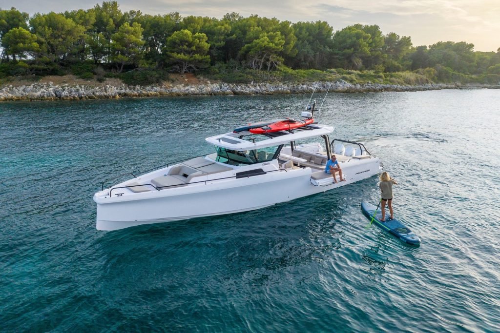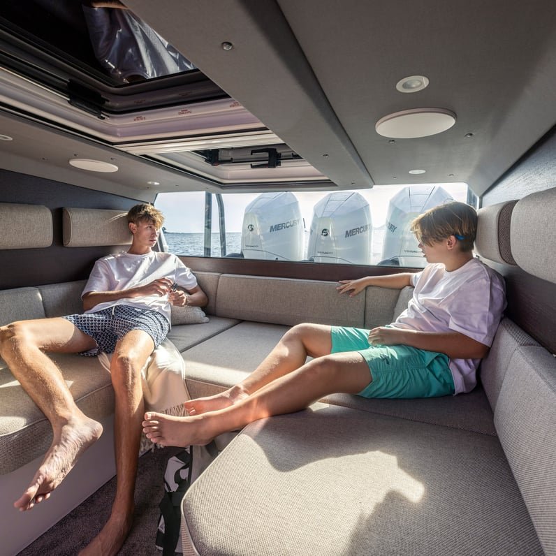 Con su conducción sin igual y sus características únicas a bordo, tiene más razones que nunca para salir más tiempo y explorar más lejos, haga el tiempo que haga. La reconocida hidrodinámica de la embarcación, no sólo en términos de eficiencia de combustible sino también en dinámica de conducción, le proporciona la sensación deportiva de una embarcación mucho más pequeña.