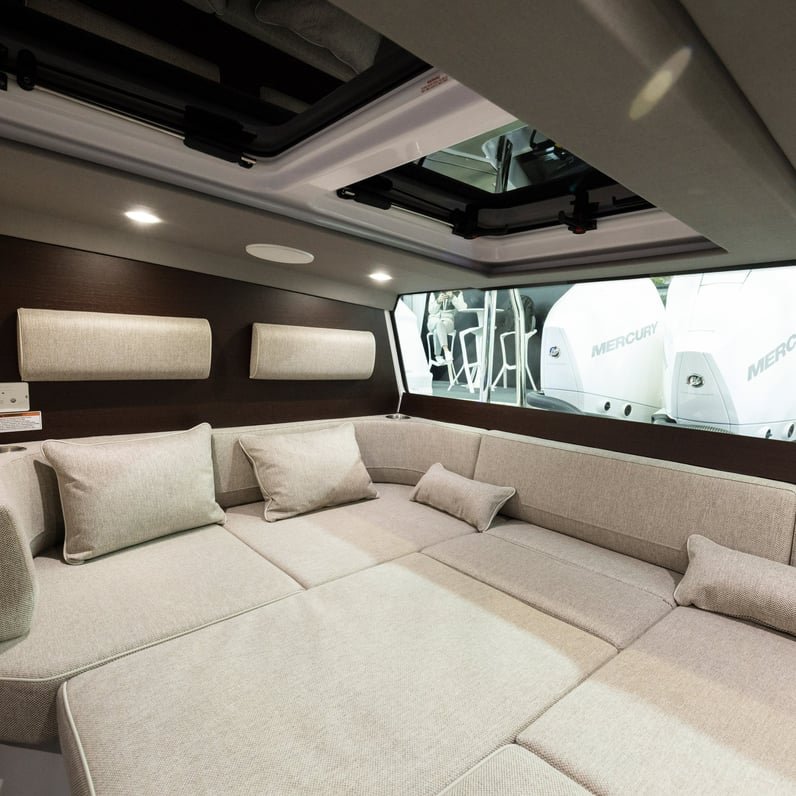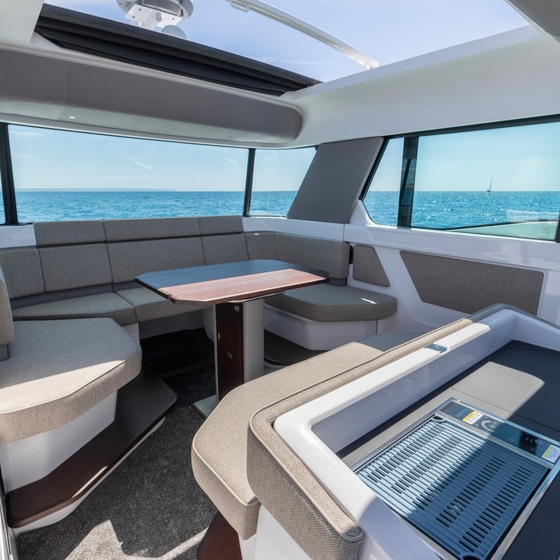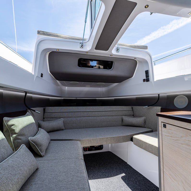 Nos encanta sacar productos disruptivos que desafíen la norma y nuestro Axopar 45 XC Cross Cabin, reconocible al instante, no es una excepción. Se trata de la primera embarcación del mundo con motor fueraborda y cabina totalmente envolvente de su tamaño, que ofrece una navegación sin igual en cualquier condición meteorológica. Con un simple toque, puede pasar sin problemas de una embarcación con cabina cerrada a una experiencia de barco abierto. En un instante, puede cerrar rápidamente las grandes puertas correderas dobles y los techos eléctricos dobles para estar completamente protegido de los elementos.