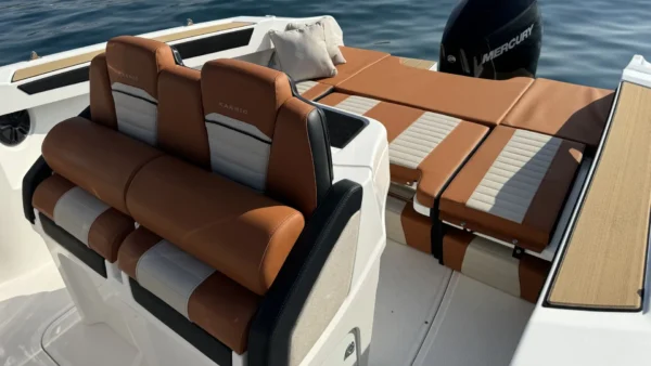 Équipée d’un moteur Mercury FourStroke V6 de 225 CV, cette unité offre un rendement doux, puissant et fiable, idéal tant pour la navigation de loisir que pour des séjours plus longs à bord.