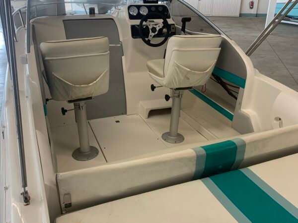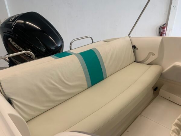 En ce qui concerne l’équipement, le bateau dispose d’un bimini, solarium à l’arrière, échelle de bain, table de pique-nique, guindeau électrique avec ancre et chaîne, capote de camping, toile de mouillage, sièges pilote et copilote, banquette à l’arrière, et sonde Garmin Fishfinder 160, le tout sur une coque traitée avec antifouling. De plus, le bateau est livré avec l’entretien complet de la coque et du moteur réalisé en 2025, donc il est prêt à être utilisé dès le premier jour.