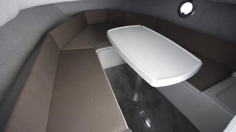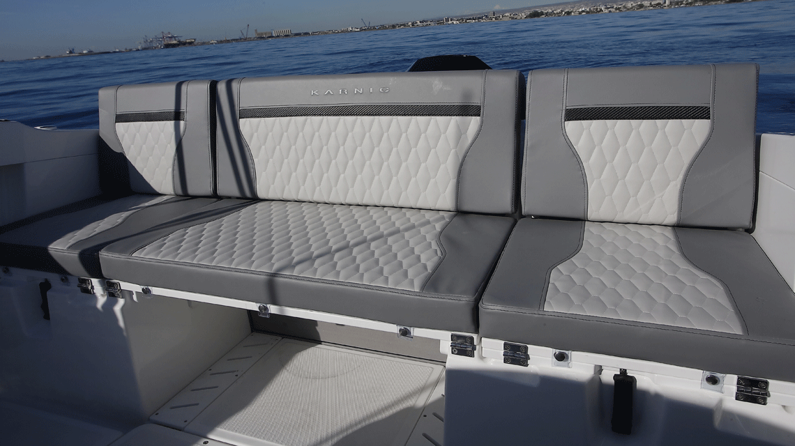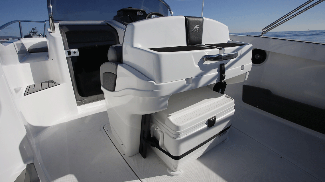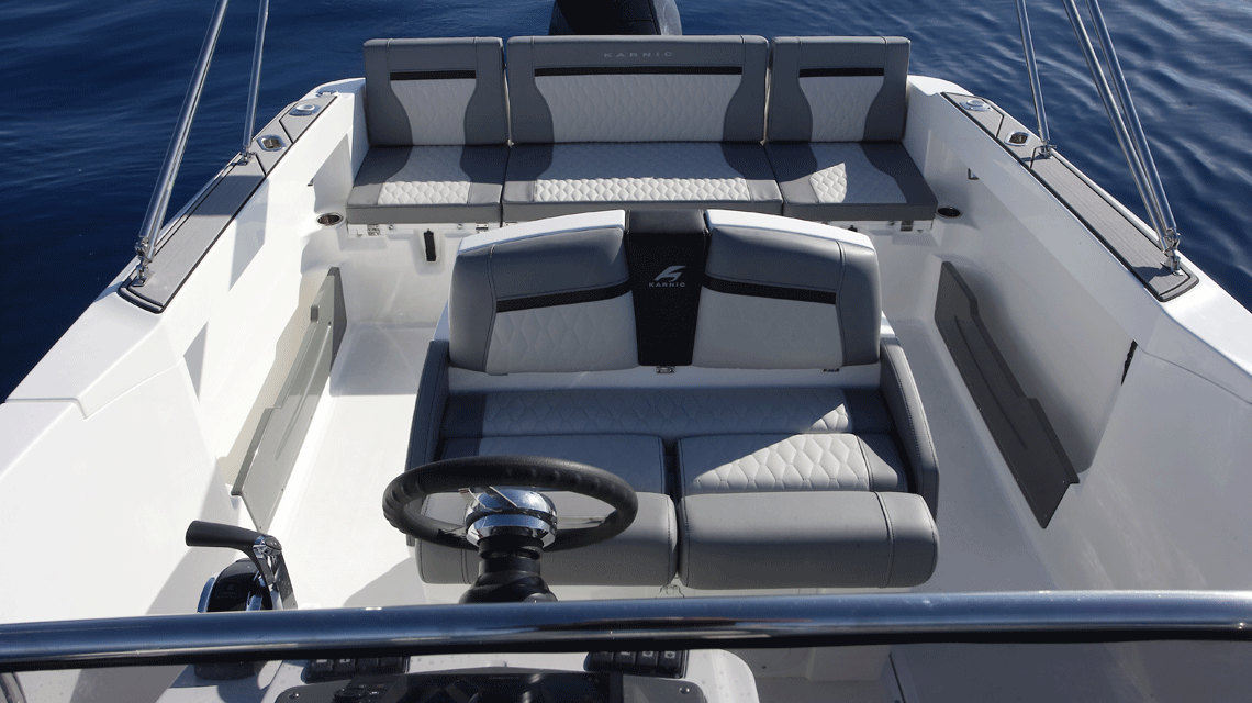 La Karnic SL 652 sigue la línea de aprovechar al máximo cada espacio para crear una embarcación que combina socialización y confort, pero con la ventaja adicional de contar con una cabina cerrada en proa. Con 6,3 metros de eslora (7,15 metros incluyendo la plataforma de baño), este modelo ofrece la posibilidad de dormir a bordo, lo que lo hace ideal para quienes buscan escapadas más largas o la comodidad de poder descansar durante sus jornadas en el mar.