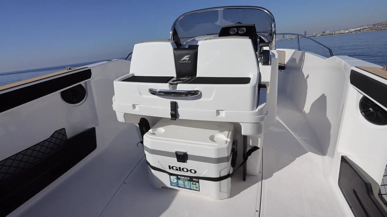 La Karnic SL 691 sigue la filosofía de la marca de aprovechar al máximo el espacio para crear una embarcación cómoda y social. Con 6,3 metros de eslora (7,15 metros si contamos la plataforma de baño), este modelo ofrece un poco más de espacio que la SL 601, permitiendo llevar a bordo hasta 8 personas. Esto hace que sea la opción ideal para quienes buscan compartir la experiencia náutica con un grupo más amplio, sin sacrificar la comodidad ni la maniobrabilidad.