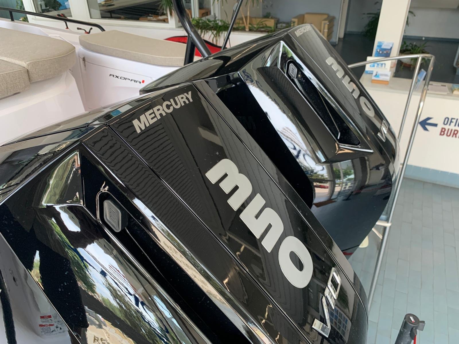 Equipped with the BRABUS Line and the impressive Mercury Verado V10 engines of 350 HP each, this Axopar reaches a top speed of 53 knots. Its aft layout, with the cabin at the stern, and the gullwing doors in the fore cabin, provide a practical and adaptable space, ideal for all kinds of adventures.